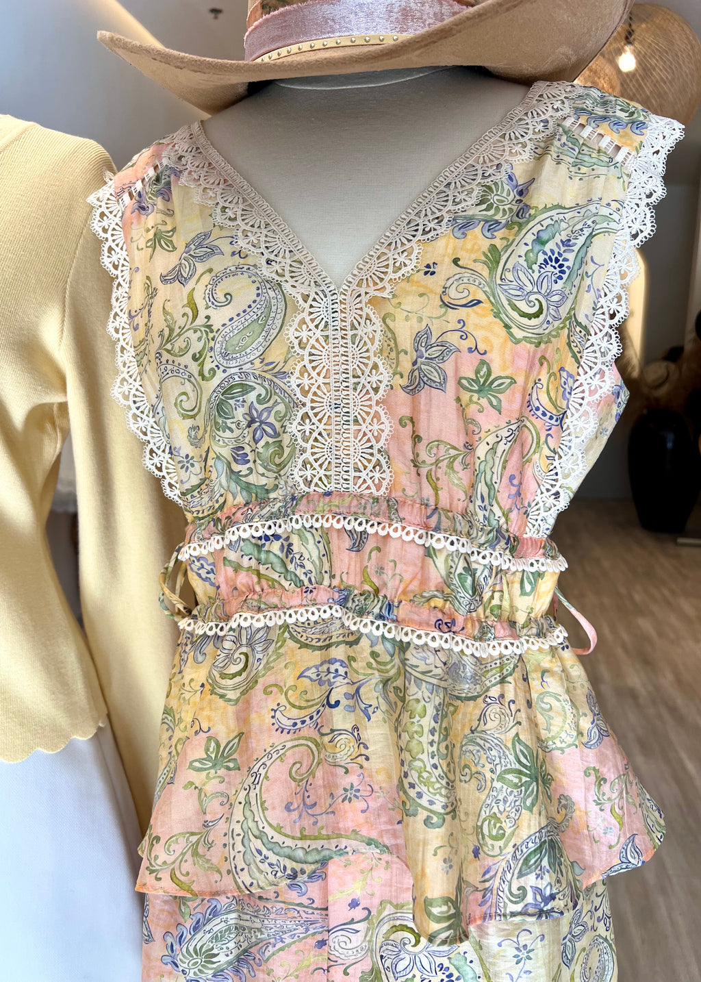 LACE PAISLEY MAXI DRESS- YELLOW MULTI
