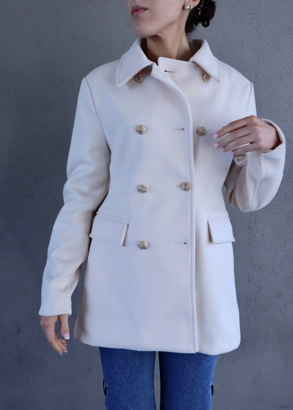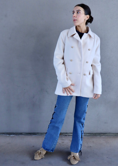 DOUBLE BREASTED PEACOAT- IVORY