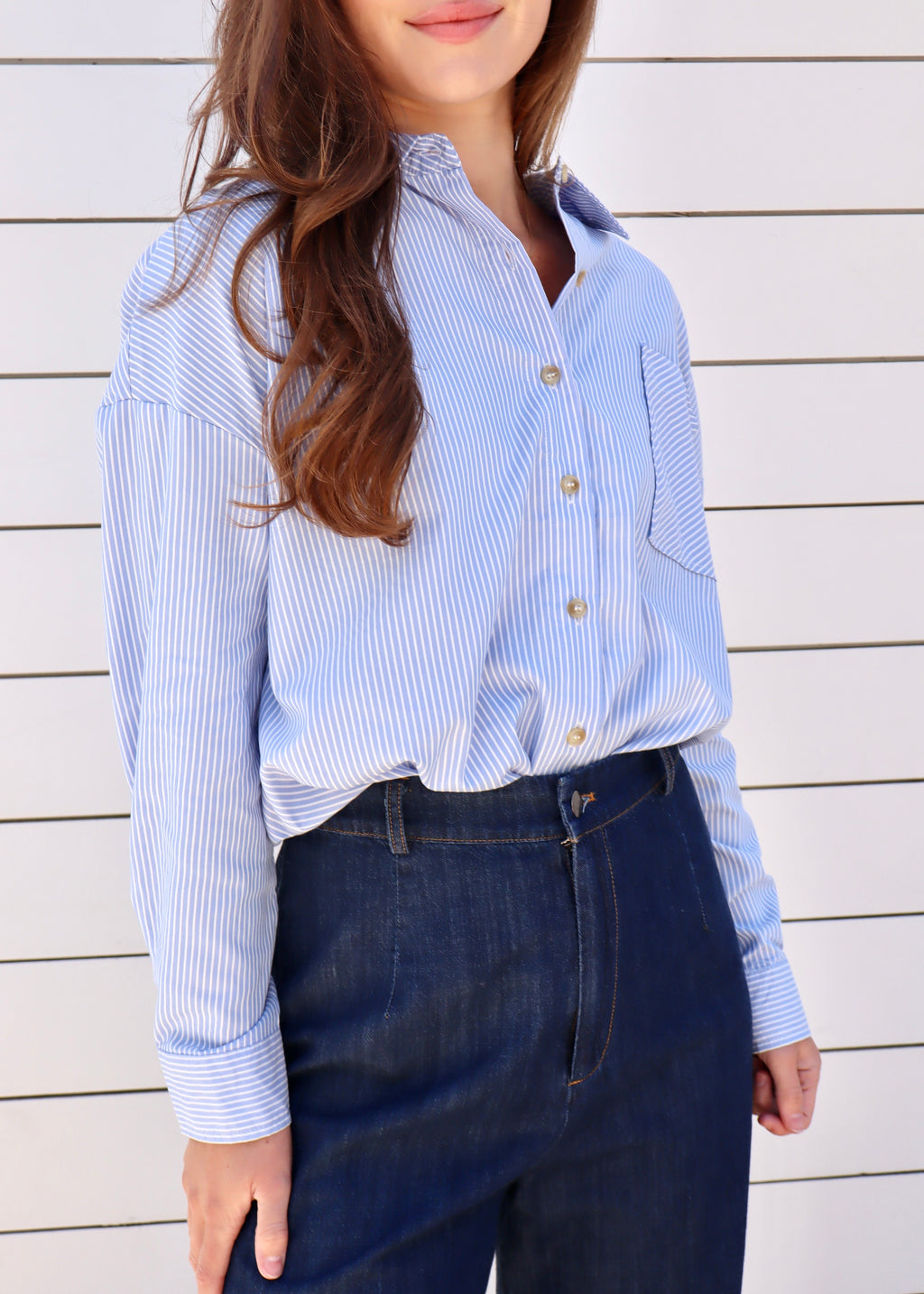 STRIPED OVERSIZED BUTTON DOWN- BLUE