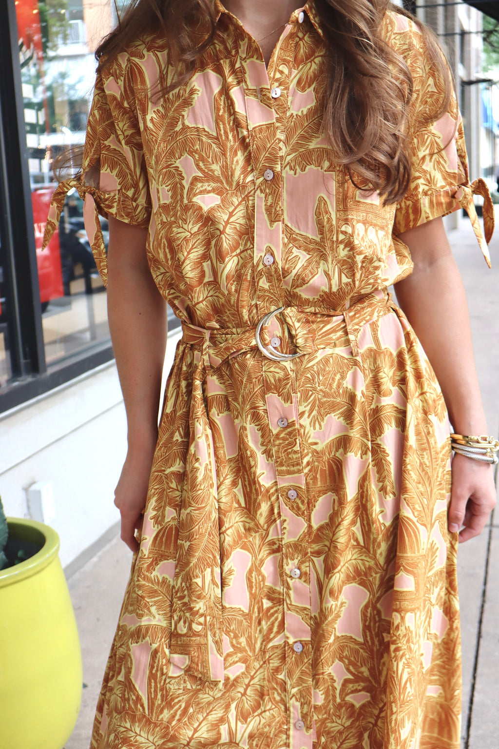 TROPICAL SHIRT MIDI DRESS- GOLDEN