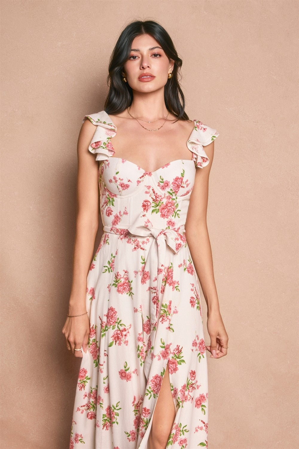 LOVE CORSET FLUTTER DRESS- ROSE PINK