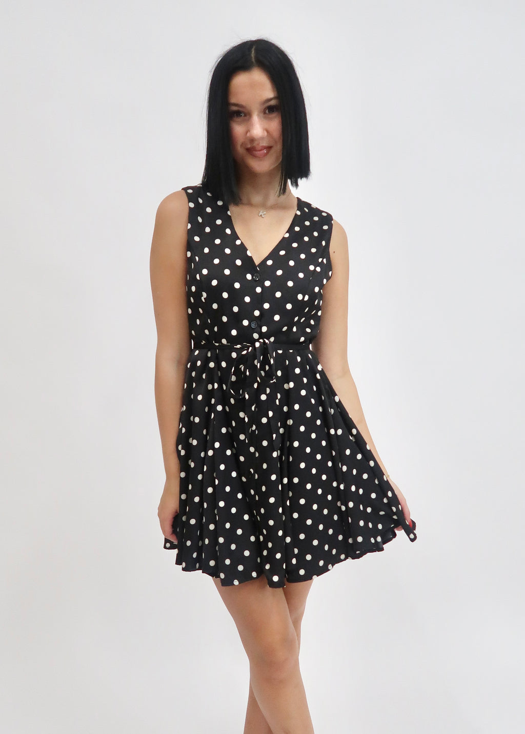 POPLIN RUFFLE SLV TIERED DRESS- BLACK