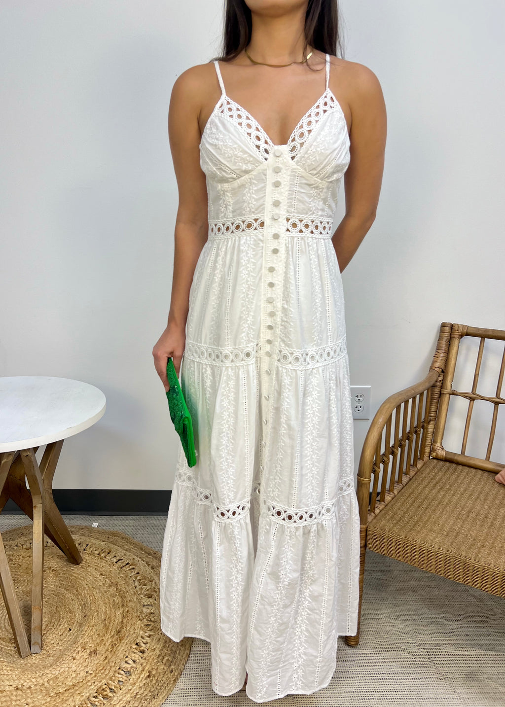 SUNBEAM EYELET MAXI DRESS- WHITE