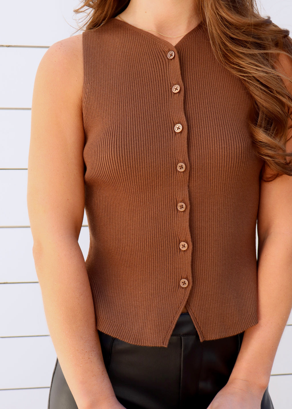 RIBBED KNIT VEST- BROWN