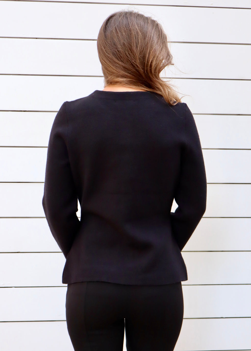 JEWELED BUTTON KNIT JACKET- BLACK