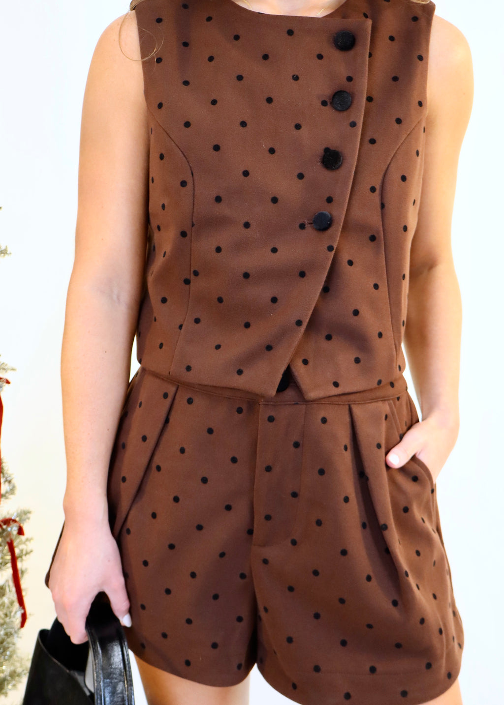 POLKA DOT VEST TOP- BROWN