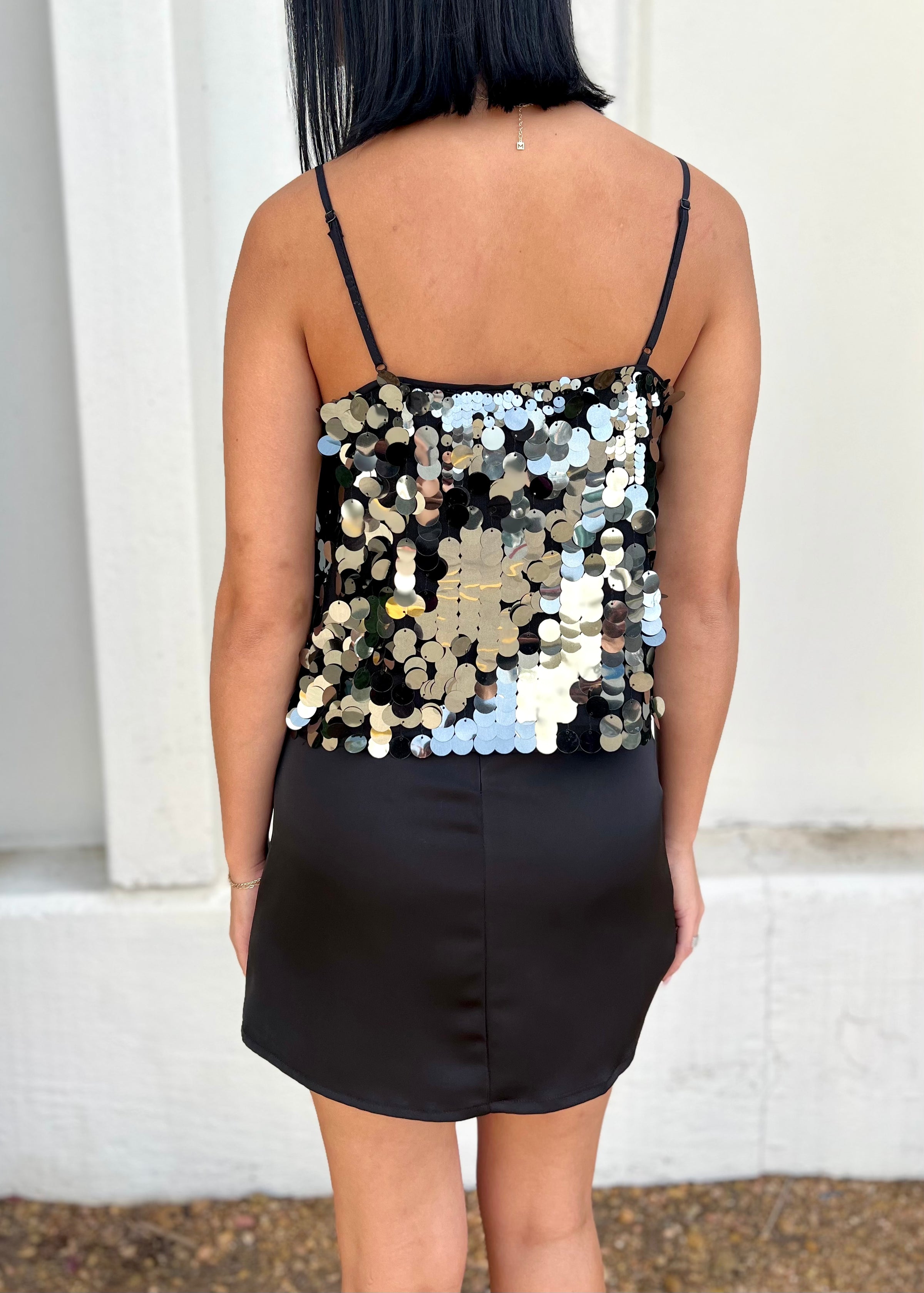RAVEN SEQUIN CAMI- BLACK/SILVER