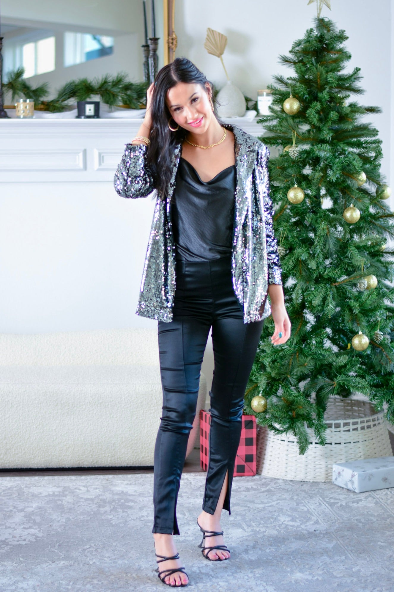 SEQUIN BOYFRIEND BLAZER- CHROME