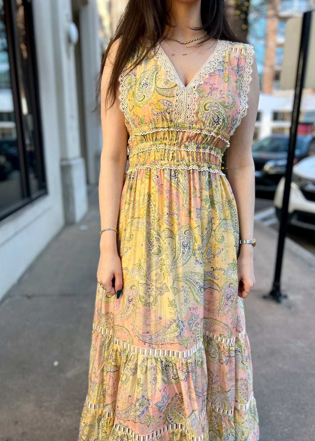 LACE PAISLEY MAXI DRESS- YELLOW MULTI