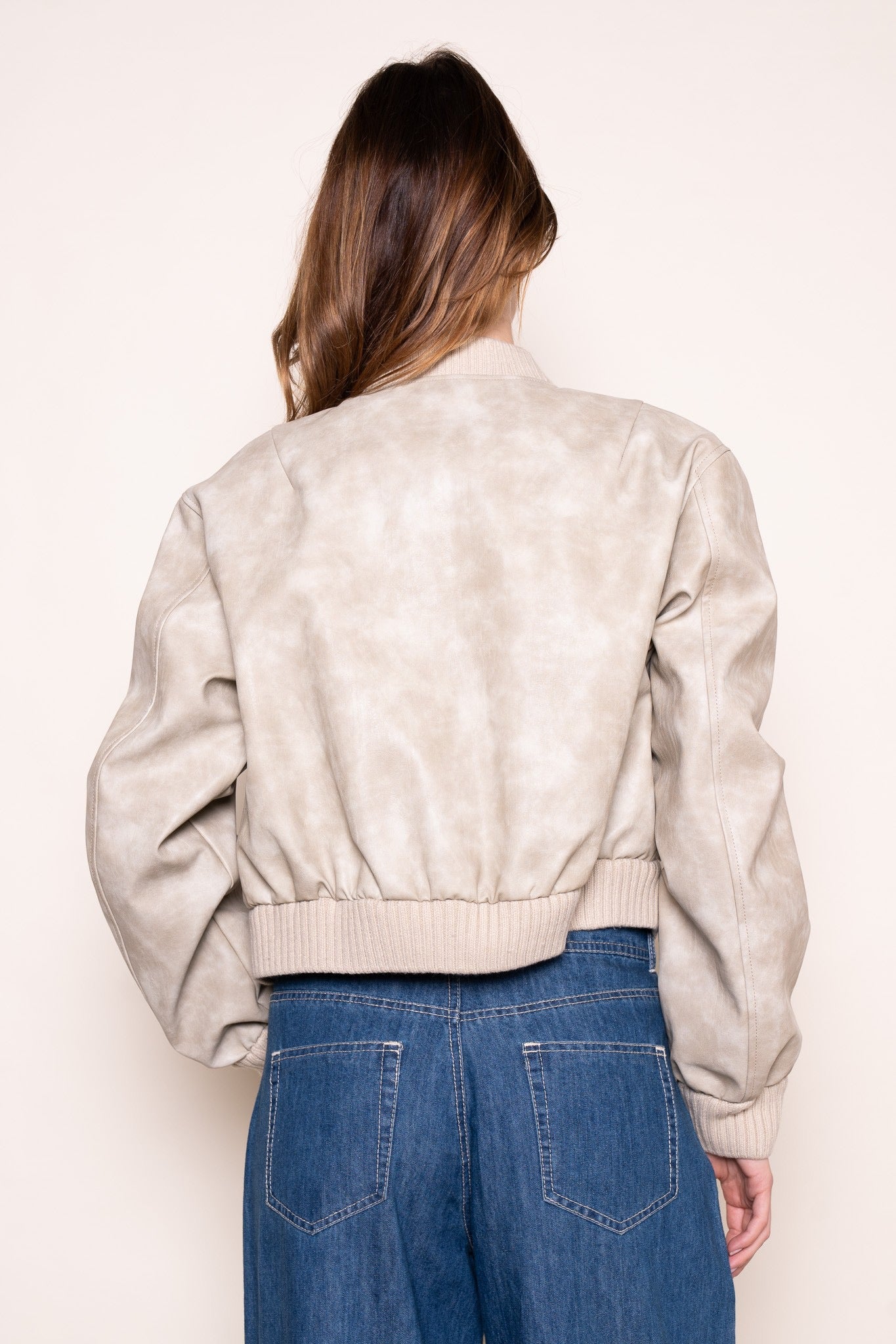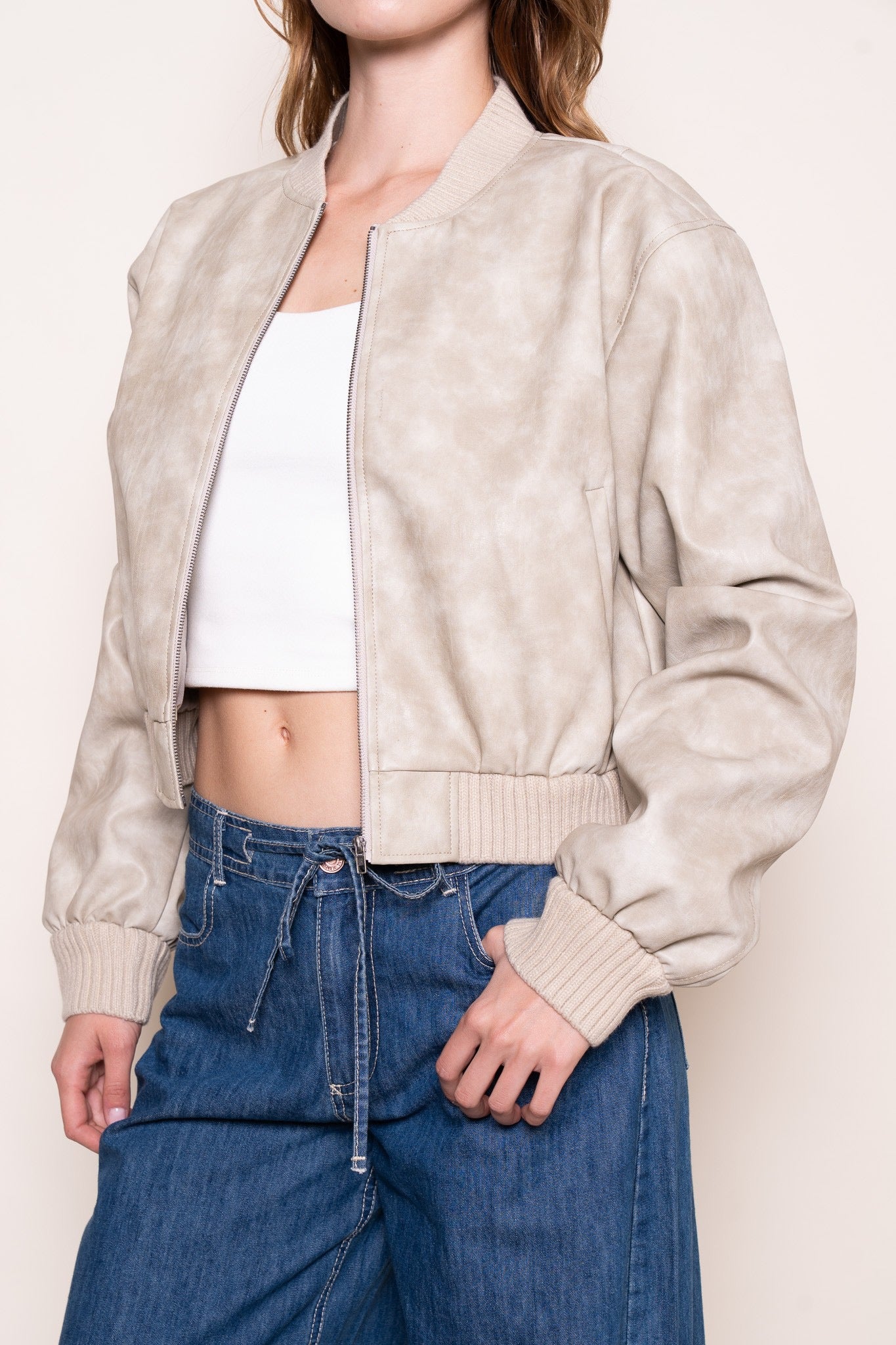 KNIT COLLAR BOMBER JACKET- SAND