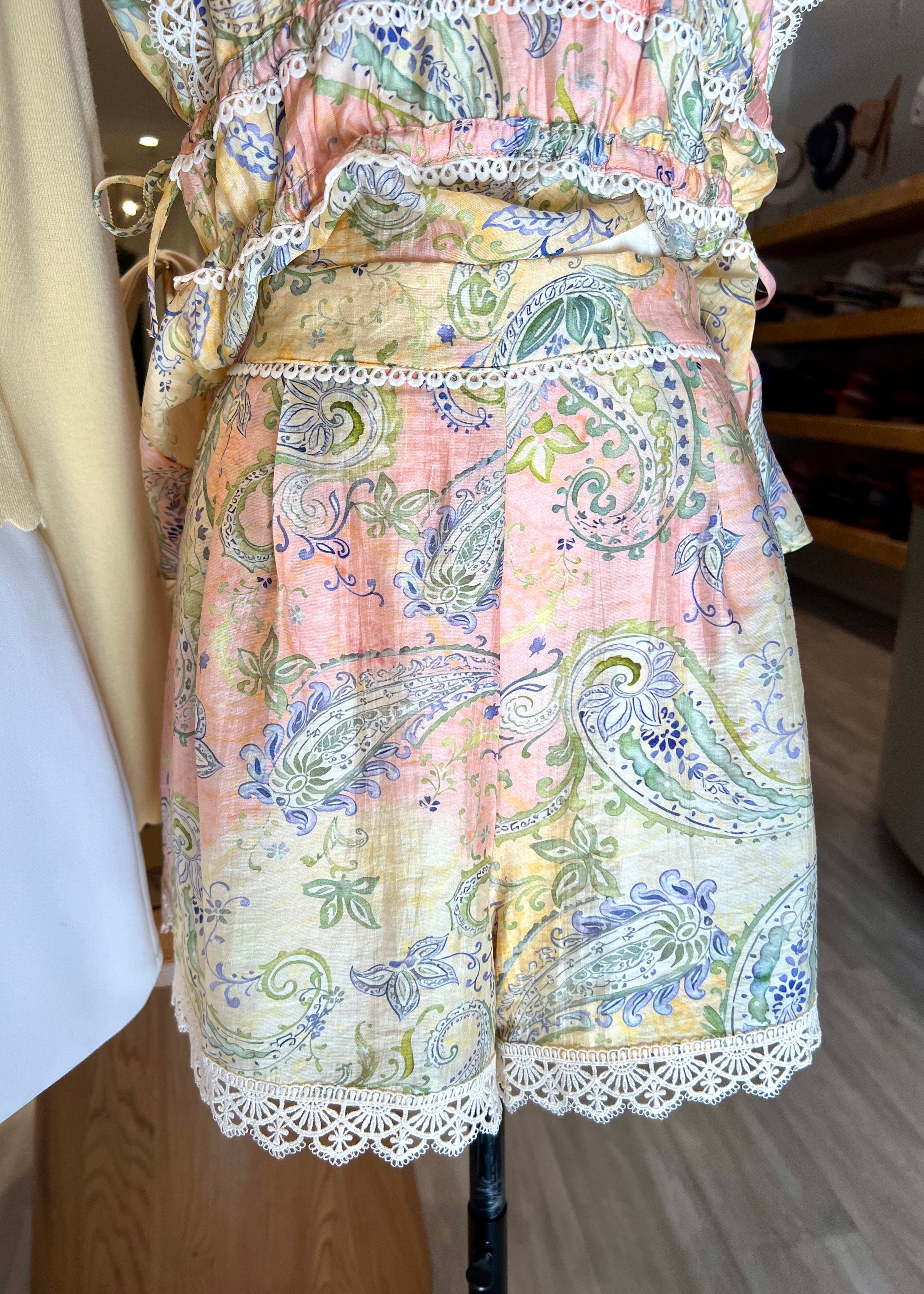 LACED PAISLEY SHORTS- YELLOW MULTI