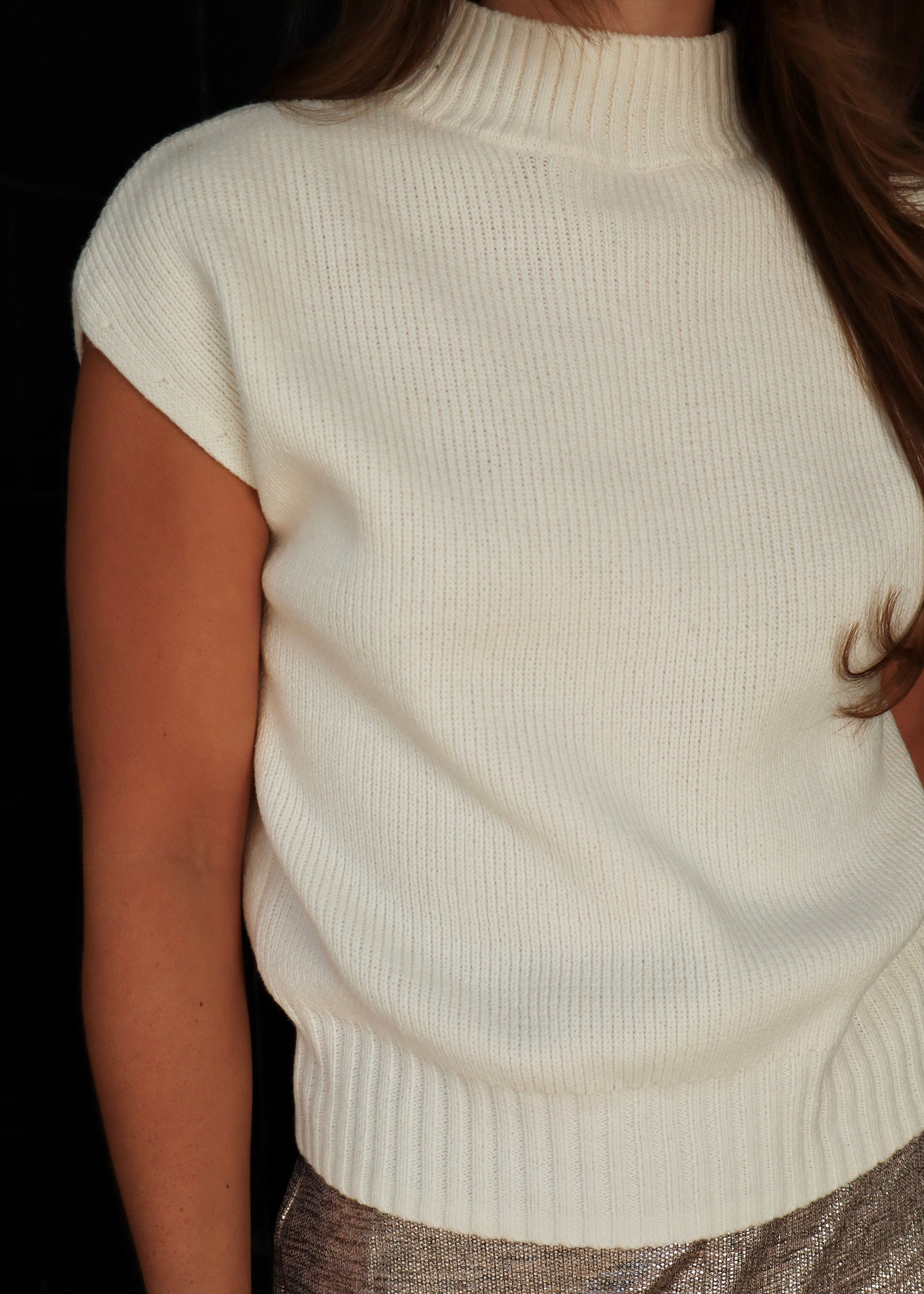 MOCK NECK SLEEVELESS KNIT- CREAM