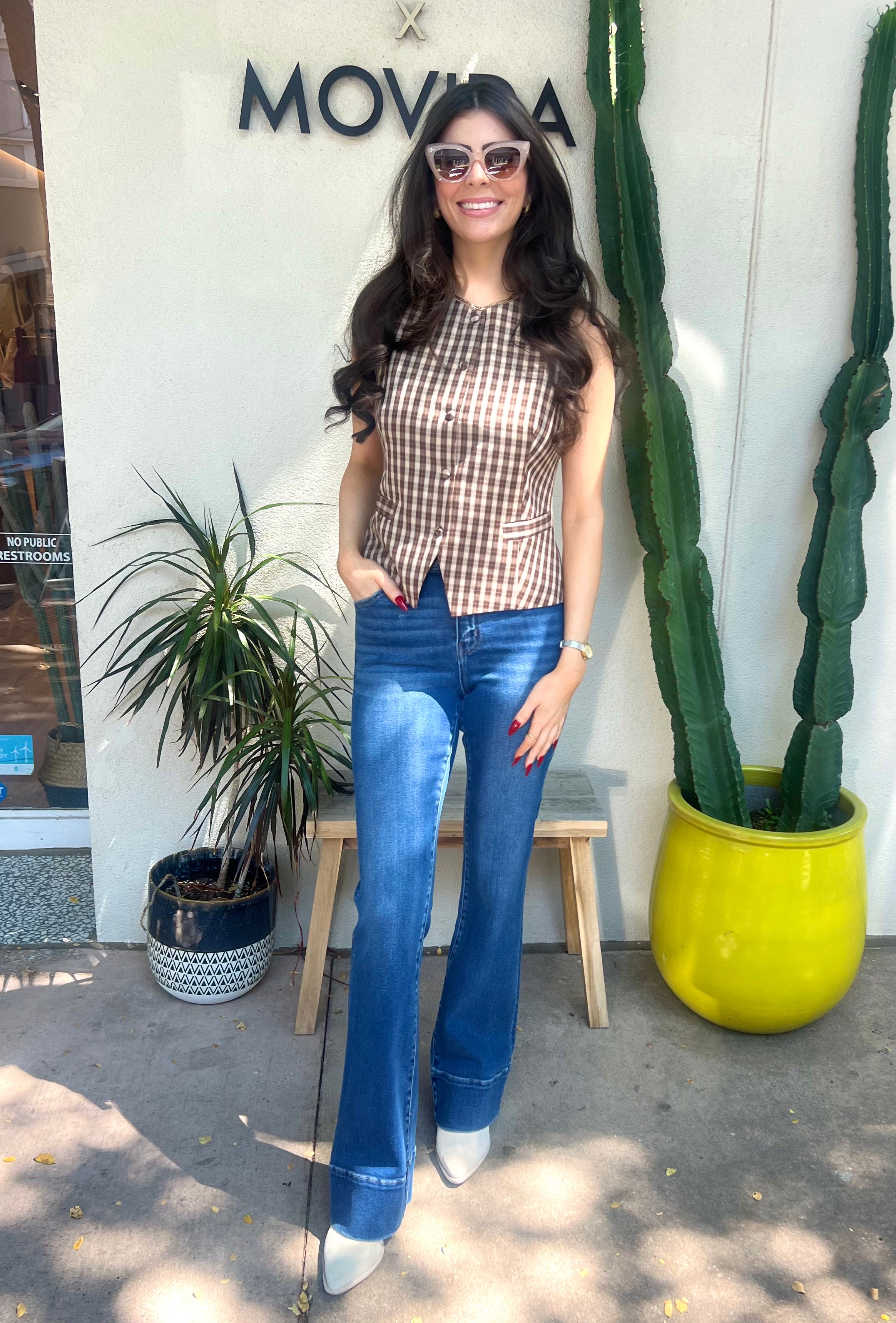 PLAID BUTTON DOWN VEST- KHAKI BROWN