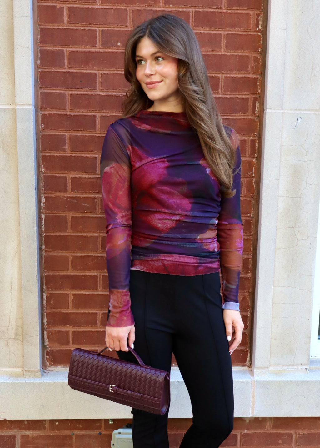 AU REVOIR FLORAL MAXI DRESS- MERLOT