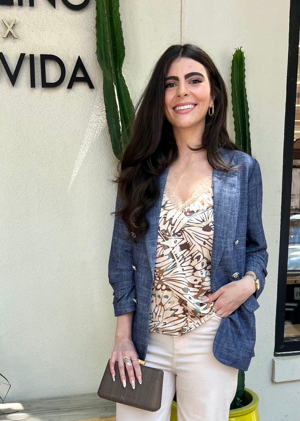 CHAMBRAY DENIM BLAZER- DENIM BLUE