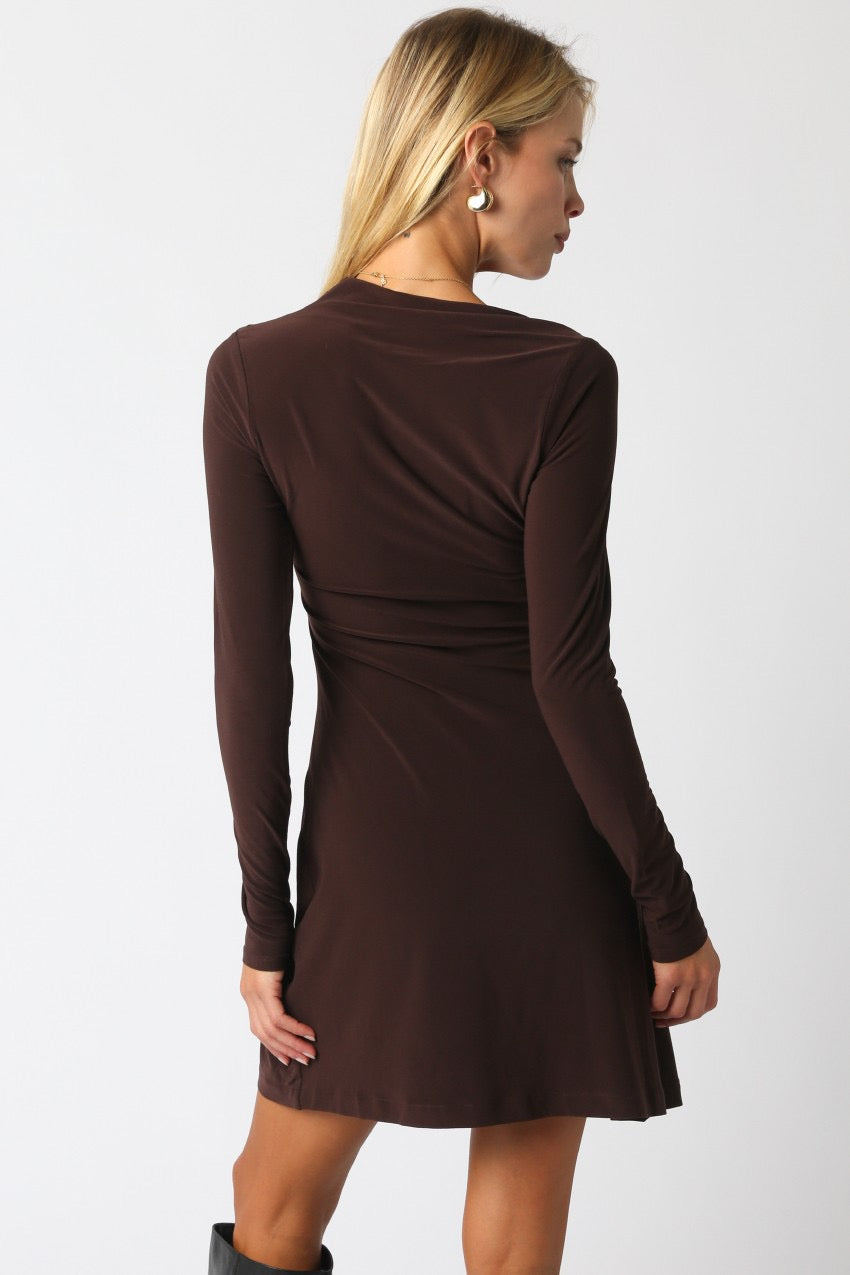 SATIN DRAPED MINI DRESS- LIGHT OLIVE