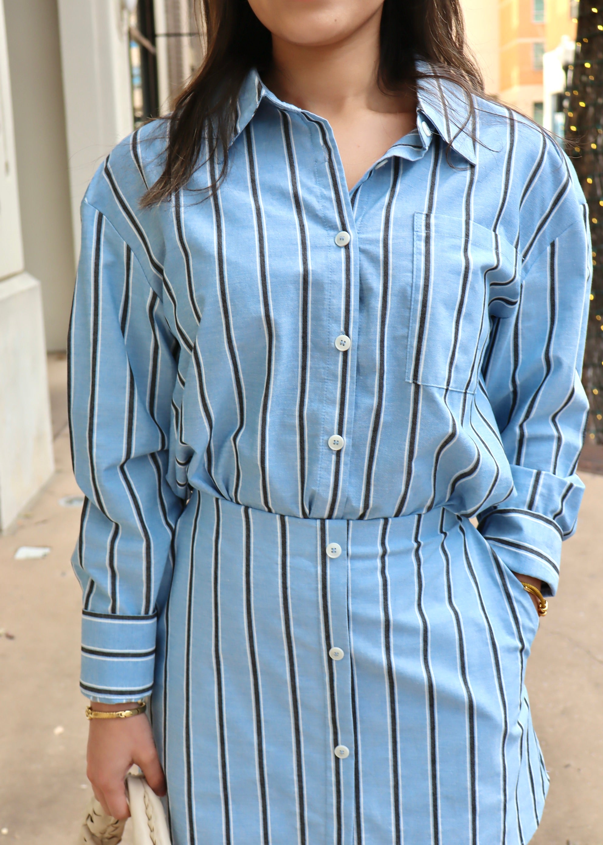 PINSTRIPE MINI SKIRT- BLUE