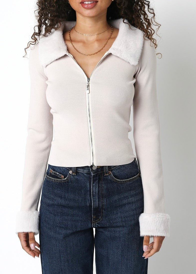 MATTIE FUR CARDIGAN- PEARL