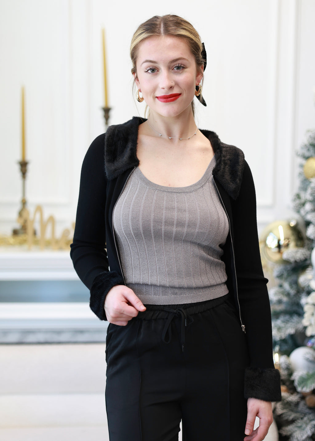 MATTIE FUR CARDIGAN- BLACK
