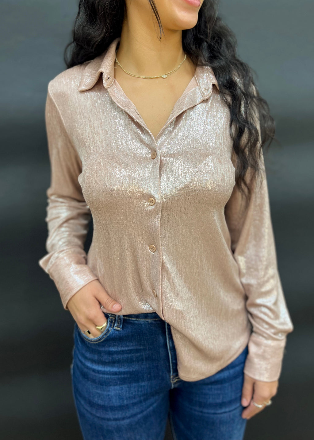 COTTON STRIPED BUTTON DOWN- BEIGE