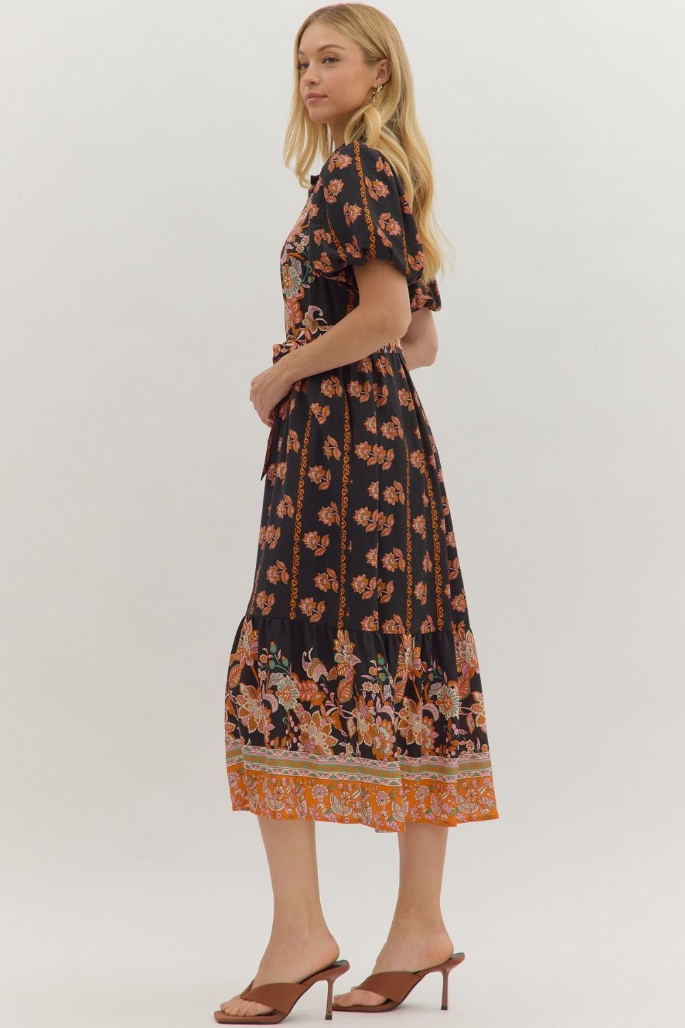 BOTANICAL MIDI DRESS- BLACK